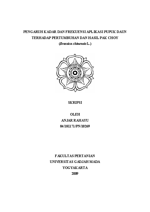 Pengaruh Kadar Dan Frekuensi Aplikasi Pupuk Daun Terhadap Pertumbuhan Dan Hasil Pak Choy (Brassica Chinensis L.) Anjar Rahayu Fakultas Pertanian UGM Konten Lokal Konten Lokal 31167