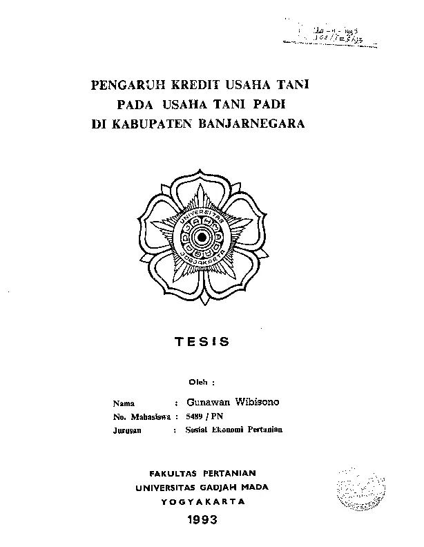 Pengaruh Kredit Usaha Tani Pada Usaha Tani Padi Di Kabupaten Banjarnegara Gunawan Wibisono Fakultas Pertanian UGM Konten Lokal Konten Lokal 31408