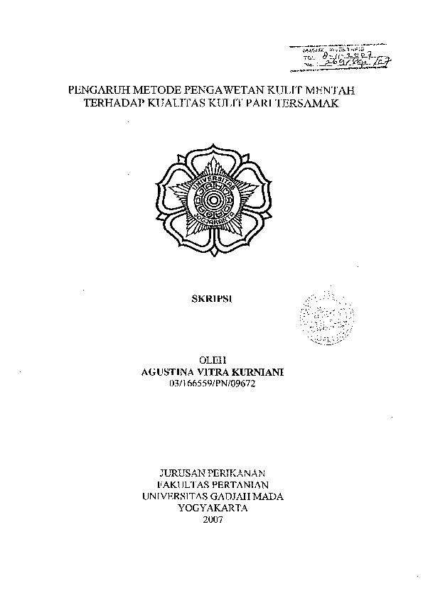 II TINJAUAN PUSTAKA A Biologi Ikan Pari Dasyatis sp Ikan pari tergolong dalam subclass Elasmobranchia bertulang rawan dengan ciri ciri badan kuat perut rata dengan dada celah insang terletak di bagian perut yaitu bawah perut Sirip dada melebar bersambungan dengan kepalanya sehingga berbentuk segitiga dan tampak seperti kelelawar Ekor mudah dibengkokkan panjang bergerigi dan menipis serta cemeti Suwarastuti dkk 1990 Bentuk tubuh ikan pari dapat dilihat pada gambar 2 1 Gambar 2 1 Ikan pari Dasyatis sp Sumber Anonim 2006b Menurut Saanin 1968 klasifikasi ikan pari adalah sebagai berikut Phyllum Chordata Class Pisces Subclass Elasmobranchia Ordo Batoidei Family Trygonidae Genus Dasyatis Spesies Dasyatis sp