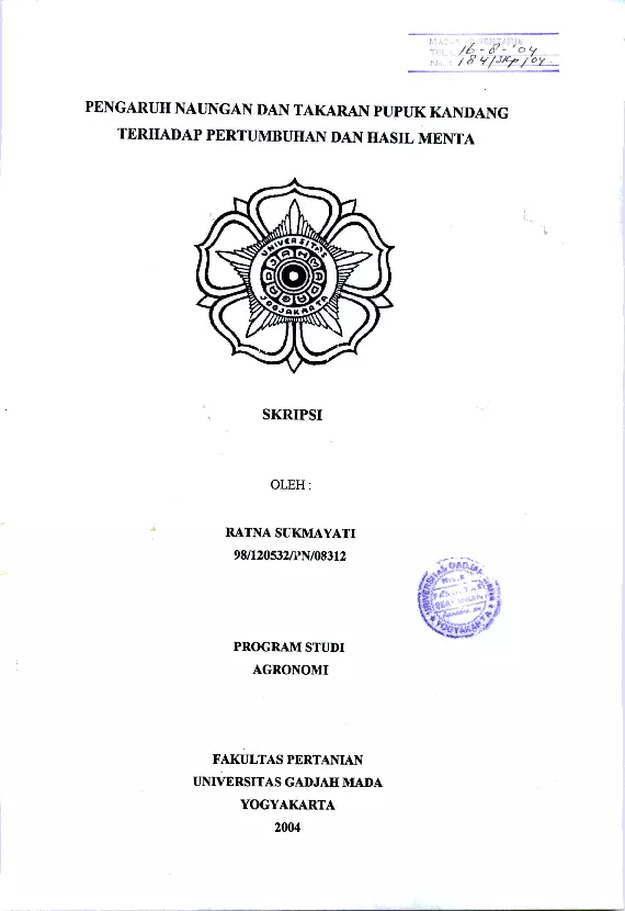 Pengaruh Naungan Dan Takaran Pupuk Kandang Terhadap Pertumbuhan Dan Hasil Menta Ratna Sukmayati Fakultas Pertanian UGM Konten Lokal Konten Lokal 31429