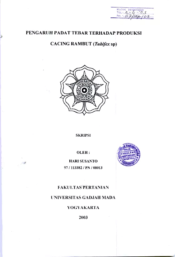 Pengaruh Padat Tebar Terhadap Produksi Cacing Rambut (Tubifex sp) Hari Susanto Fakultas Pertanian UGM Konten Lokal Konten Lokal 48475