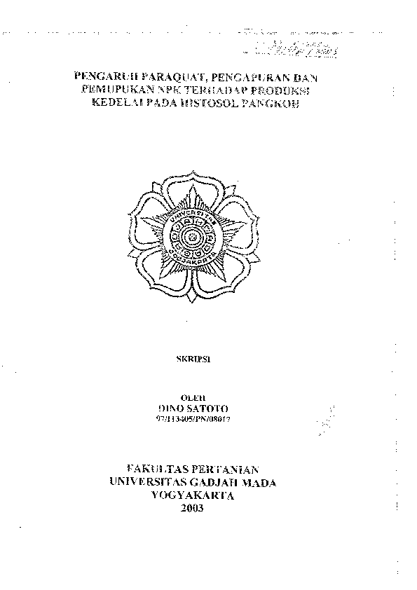 Pengaruh Paraquat, Pengapuran Dan Pemupukan NPK Terhadap Produksi Kedelai Pada Histosol Pangkoh Dino Satoto Fakultas Pertanian UGM Konten Lokal Konten Lokal 48229