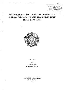 Pengaruh Pemberian Maleic Hydrazide ( Mh-30) Terhadap Hasil Tembakau Kedu Jenis Perketek Yuswantoro Fakultas Pertanian UGM Konten Lokal Konten Lokal 31033
