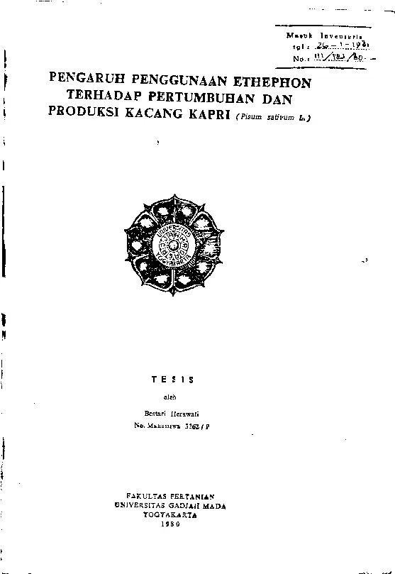 Pengaruh Penggunaan Ethephon Terhadap Pertumbuhan Dan Produksi Kacang Kapri (Pisum Sativum L.) Bestari Herawati Fakultas Pertanian UGM Konten Lokal Konten Lokal 30992