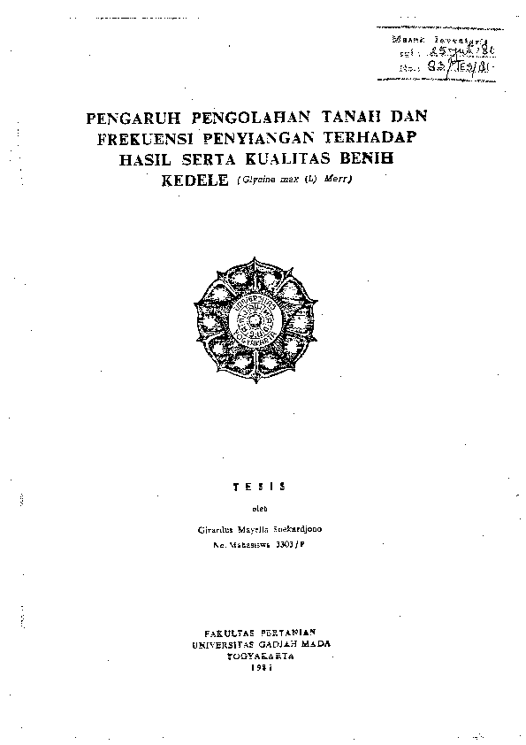 Pengaruh Pengolahan Tanah Dan Frekuensi Penyiangan Terhadap Hasil Serta Kualitas Benih Kedele (Glycine Max (L) Merr) Girardus Mayella Soekardjono Fakultas Pertanian UGM Konten Lokal Konten Lokal 48479