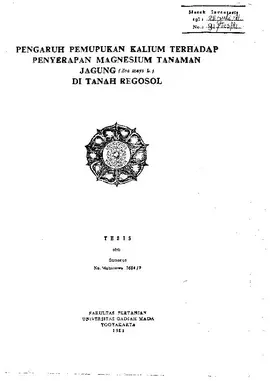 Pengaruh Penumpukan Kalium Terhadap Penyerapan Magnesium Tanaman Jagung (Zea Mays L.) Di Tanah Regosol Sumarno Fakultas Pertanian UGM Konten Lokal Konten Lokal 31396