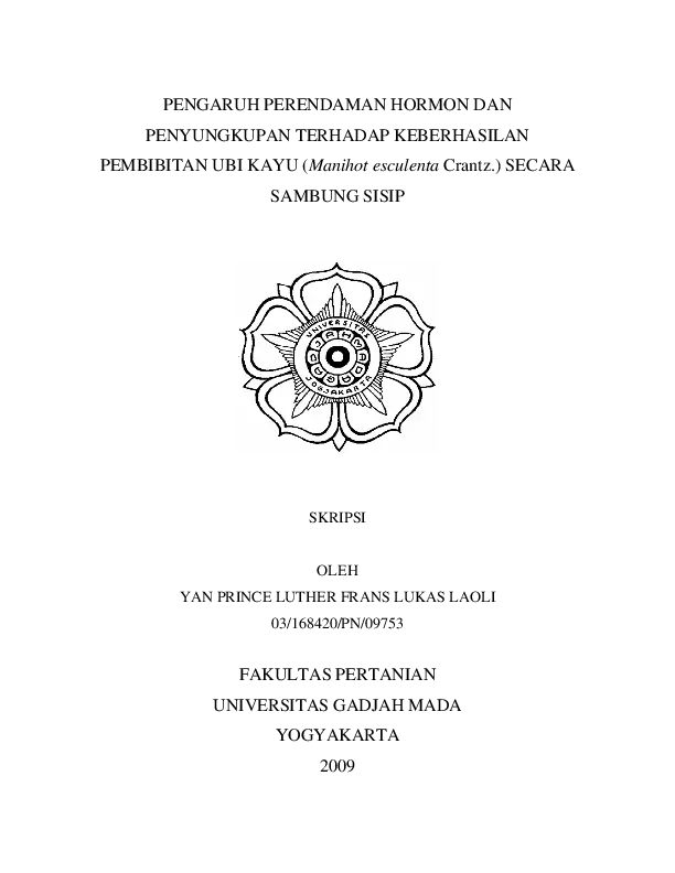Pengaruh Perendaman Hormon Dan Penyungkupan Terhadap Keberhasilan Pembibitan Ubi Kayu (Manihot Esculenta Crantz.) Secara Sambung Sisip Yan Prince Luther Frans Lukas Laoli Fakultas Pertanian UGM Konten Lokal Konten Lokal 31330