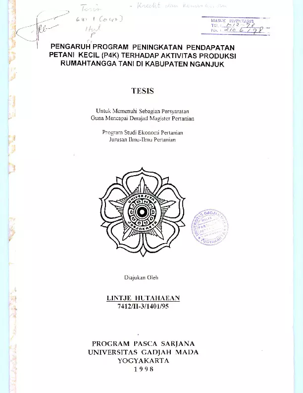 Pengaruh Program Peningkatan Pendapatan Petani Kecil (P4K) Terhadap Aktivitas Produksi Rumahtangga Tani Di Kabuoaten Nganjuk Lintje Hutahaean Fakultas Pertanian UGM Konten Lokal Konten Lokal 31138
