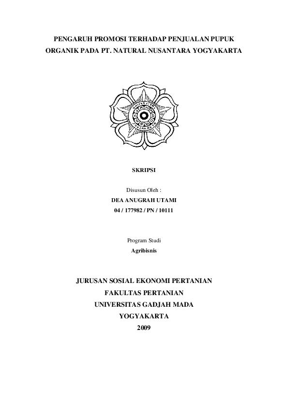 Pengaruh Promosi Terhadap Penjualan Pupuk Organik Pada Pt. Natural Nusantara Yogyakarta Dea Anugrah Utami Fakultas Pertanian UGM Konten Lokal Konten Lokal 31185