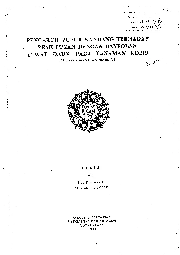 Pengaruh Pupuk Kandang Terhadap Pemupukan Dengan Bayfolan Lewat Daun Pada Tanaman Kobis (Brassica Oleracea Var, Capitata L) Listy Krispurwanti Fakultas Pertanian UGM Konten Lokal Konten Lokal 31063