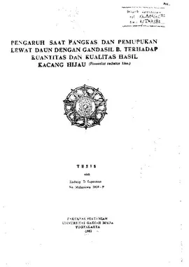 Pengaruh Saat Pangkas Dan Pemupukan Lewat Daun Dengan Gandasil B. Terhadap Kuantitas Dan Kualitas Hasil Kacang Hijau (Phaseoulus Radiatus Linn) Endung D Suparman Fakultas Pertanian UGM Konten Lokal Konten Lokal 31069