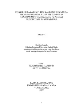 Pengaruh Takaran Pupuk Kandang Dan Mulsa Terhadap Serapan N Dan Pertumbuhan Tanaman Mint (Mentha Arvensis Var Javanica) Di Inceptisol Banjarnegara Nugroho Sri Harsono Fakultas Pertanian UGM Konten Lokal Konten Lokal 31271