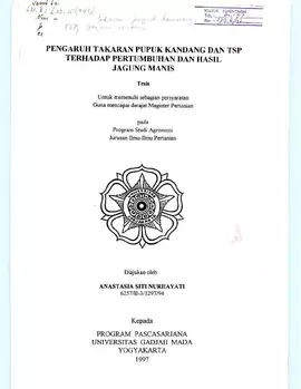 Pengaruh Takaran Pupuk Kandang Dan Tsp Terhadap Pertumbuhan Dan Hasil Jagung Manis Anastasia Siti Nurhayati Fakultas Pertanian UGM Konten Lokal Konten Lokal 31128