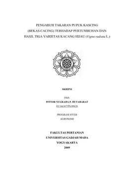 Pengaruh Takaran Pupuk Kascing (Bekas Cacing) Terhadap Pertumbuhan Dan Hasil Tiga Varietas Kacang Hijau (Vigna Radiata L.) Pittor Nugraha P. Hutabarat Fakultas Pertanian UGM Konten Lokal Konten Lokal 31283