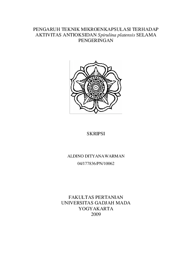 Pengaruh Teknik Mikroenkapsulasi Terhadap Aktivitas Antioksidan Spirulina Platensis Selama Pengeringan Aldino Dityanawarman Fakultas Pertanian UGM Konten Lokal Konten Lokal 31160