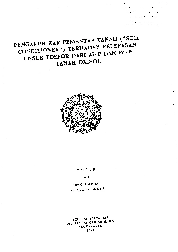 Pengaruh Zat Pemantap Tanah (\"Soil Condition\") Terhadap Pelepasan Unsur Fosfor Dari Al-P Dan Fe-P Tabah Oxisol Sumedi Budiraharjo Fakultas Pertanian UGM Konten Lokal Konten Lokal 31060