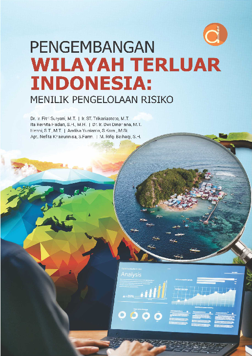 Buku yang berjudul Pengembangan Wilayah Terluar Indonesia Menilik Pengelolaan Risiko merupakan karya dari Dr Ir Fitri Suryani M T dkk Pengembangan wilayah perbatasan amatlah penting bagi penyelenggaraan desentralisasi demi memecahkan kebutuhan masalah ketimpangan antarwilayah dan kesejahteraan ekonomi Kebijakan desentralisasi ini memungkinkan setiap daerah untuk dapat mengelola dan mampu mendayagunakan sumber daya yang ada secara mandiri Artinya ada potensi cukup besar bagi daerah untuk memaksimalkan kawasan perbatasan yang dimilikinya Apabila kawasan perbatasan ini dikelola dengan baik akan banyak mendatangkan peluang bagi peningkatan produksi yang selanjutnya akan menimbulkan berbagai efek pengganda terhadap peningkatan kesejahteraan masyarakat setempat Namun dalam pelaksanaannya pengembangan ini tentunya memiliki tantangan dan risikonya sendiri Baik tantangan maupun risiko ini perlu dikelola dengan baik agar alih alih menjadi batu sandungan malah menjadi faktor pemicu untuk pengembangan selanjutnya