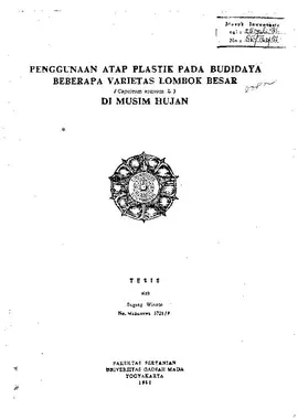 Penggunaan Atap Plastik Pada Budidaya Beberapa Varietas Lombok Besar (Capsicum Annuum L.) Di Musim Hujan Sugeng Wintono Fakultas Pertanian UGM Konten Lokal Konten Lokal 30969