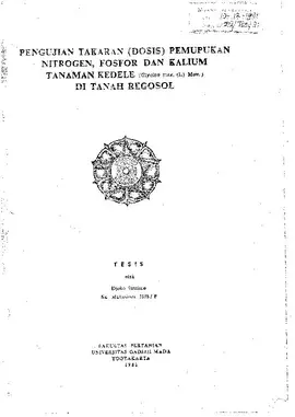 Pengujian Takaran (Dosis) Pemupukan Notrogen, Fosfor Dan Kalium Tanaman Kedele (Glycine Max, (L) Merr) Di Tanah Regosol Djoko Sutrisno Fakultas Pertanian UGM Konten Lokal Konten Lokal 31057