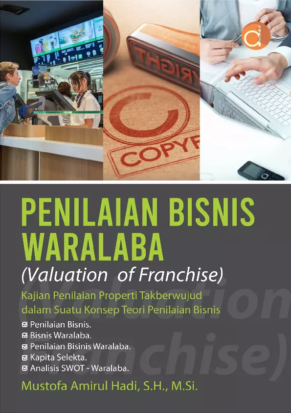 Sinopsis Buku: Buku ini membahas secara mendalam tentang *Penilaian Bisnis Waralaba* (*Valuation of Franchise*), yang merupakan bagian dari kajian penilaian properti takberwujud dalam konteks teori penilaian bisnis. Buku ini dilengkapi dengan pendekatan sistematis yang memulai dari dasar-dasar penilaian bisnis, termasuk terminologi, subjek penilaian, prosedur penilaian, prinsip dasar penilaian, tujuan penilaian, serta analisis kesehatan perusahaan dan industri. Selanjutnya, buku ini menjelaskan konsep-konsep terkait bisnis waralaba, seperti terminologi, perkembangan waralaba, struktur bisnis, dan strategi penerapan. Buku ini bertujuan untuk memberikan pemahaman yang komprehensif dan terstruktur tentang bagaimana melakukan penilaian bisnis waralaba, yang merupakan salah satu bentuk aset takberwujud. Penulis menggabungkan ilmu ekonomi, akuntansi, dan hukum sebagai pendukung pemahaman teori penilaian bisnis waralaba. Materi buku ini terdiri dari lima bab yang disusun secara runut, mulai dari pemahaman dasar hingga penerapan metode penilaian dalam praktik bisnis. Dengan adanya buku ini, diharapkan dapat memberikan sumbangsih pengetahuan yang bermanfaat bagi para akademisi dan praktisi dalam bidang bisnis waralaba, terutama dalam memahami konsep teori dan aplikasinya secara lebih mendalam.