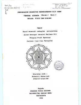 Peningkatan Kecepatan Perkecambahan Biji Aren (Arenga Pinnata (Wurmb.) Merr.) Secara Fisis Dan Kimiawi Rohmati Rabaniyah Fakultas Pertanian UGM Konten Lokal Konten Lokal 31111