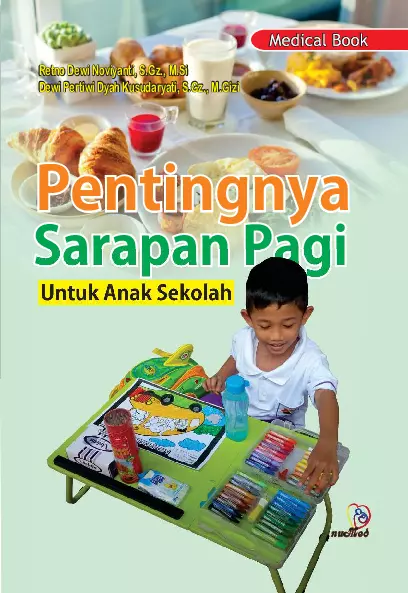Sinopsis Buku: Buku ini berjudul *“Pentingnya Sarapan Pagi untuk Anak Sekolah”* dan ditujukan untuk para orang tua, pendidik, serta pelaku pembelajaran di lingkungan sekolah. Buku ini merupakan hasil penelitian yang disusun oleh Retno Dewi Noviyanti, S.Gz., M.Si dan Dewi Pertiwi Dyah Kusudaryati, S.Gz., M.Gizi, dalam rangka melaksanakan Penelitian Dosen Pemula tahun 2018. Buku ini dilengkapi dengan berbagai materi yang relevan untuk memperkaya pemahaman tentang pentingnya sarapan pagi bagi anak sekolah dasar. Buku ini terdiri dari tiga bab utama. Bab I membahas tentang anak sekolah dasar, termasuk pengertian, fase perkembangan, karakteristik, serta kebutuhan gizi yang diperlukan untuk mendukung pertumbuhan dan perkembangan anak. Bab II menjelaskan tentang pendidikan gizi, termasuk pengertian, metode, dan media yang dapat digunakan dalam proses edukasi gizi untuk anak sekolah dasar. Bab III berisi tentang booklet sarapan pagi yang merupakan alat bantu untuk memperkenalkan pentingnya sarapan pagi dalam kehidupan sehari-hari anak. Selain itu, buku ini juga dilengkapi dengan berbagai gambar yang mendukung materi pembelajaran, seperti gambar piramida gizi seimbang dan contoh metode pendidikan dengan media power point serta booklet. Buku ini juga menyertakan daftar pustaka untuk memperkaya referensi dan keandalan materi yang disampaikan. Dengan adanya buku ini, diharapkan dapat menjadi sumber informasi yang bermanfaat bagi para pembaca, khususnya dalam upaya meningkatkan kualitas gizi dan kesehatan anak sekolah dasar, serta mendukung kegiatan pembelajaran yang lebih efektif dan menyenangkan.