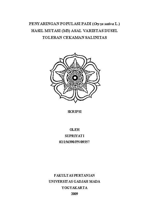 Penyaringan Populasi Padi (Oryza Sativa L.) Hasil Mutasi (M3) Asal Varietas Dusel Toleran Cekaman Salinitas Supriyati Fakultas Pertanian UGM Konten Lokal Konten Lokal 31313