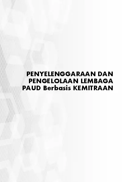 Buku ini disusun dengan tujuan untuk memberikan informasi dan pengetahuan baru bagi calon pendiri PAUD guru orang tua dan masyarakat luas mengenai Penyelenggaraan dan Pengelolaan Satuan PAUD berbasis Kemitraan Hal substansial dari buku ini ialah pendidikan berbasis mitra Isi buku ini memberikan uraian yang jelas berdasarkan teori teori Undang Undang dan fenomena lapangan serta tantangan zaman sehingga buku ini sangat tepat untuk dibaca dan dijadikan rujukan bagi calon pendiri PAUD tenaga pendidik keluarga dan masyarakat yang merupakan bagian dari mitra pendidikan