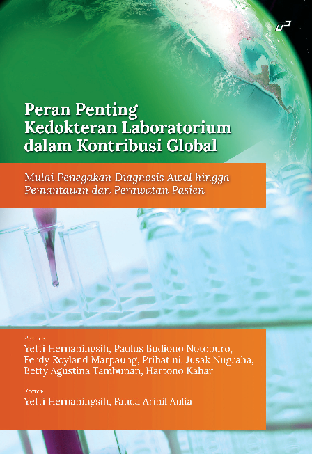 Prolog P atologi Klinik adalah bagian dari ilmu kedokteran yang mempelajari aspek aspek pemeriksaan laboratorium secara menyeluruh baik teknis pemeriksaan maupun interpretasi hasil pemeriksaan laboratorium terhadap bahan yang berasal dari manusia dengan tujuan membantu dokter klinik dalam menegakkan diagnosis pemantauan hasil terapi dan perjalanan penyakit Karena fungsi itu maka Dokter Spesialis Patologi Klinik dan perangkatnya laboratorium yang dikelolanya memiliki peran sebagai jembatan antara pasien dan dokter klinis yang menanganinya untuk melakukan diagnostik Buku Peran Penting Kedokteran Laboratorium dalam Kontribusi Global diharapkan dapat menjadi referensi baru tentang perkembangan Ilmu Patologi Klinik terkini Pembahasan tentang Mikropartikel pada Covid 19 menjelaskan tentang deteksi asal dari mikropartikel dengan mengetahui karakteristik yang dimilikinya seperti CD41 untuk mikropartikel berasal dari trombosit CD31 146 untuk mikropartikel berasal dari endotel dan banyak lagi Deteksi laboratorium dapat menggunakan ow sitometri ELISA mikroskop elektron NTA dan lainnya Pembahasan tentang Pemeriksaan dan Interpretasi Analisis Hemoglobin menjelaskan tentang analisis hemoglobin sebagai pemeriksaan lanjutan penting dalam investigasi penyebab anemia hipokromik mikrositik dengan kecurigaan adanya thalasemia dan hemoglobinopati Beberapa teknik analisis hemoglobin dengan elektroforesis hemoglobin dengan membran pada suasana asam dan basa high pressure liquid chromatography HPLC capillary electrophoresis memiliki kelebihan dan kekurangan masing masing Metode capillary electrophoresis 1