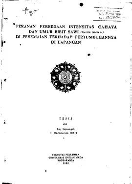 Peranan Perbedaan Intenstitas Cahaya Dan Umur Bibit Sawi (Brassica Juncea L.) Di Persemaian Terhadap Pertumbuhan Di Lapangan Emy Setyaningsih Fakultas Pertanian UGM Konten Lokal Konten Lokal 30996