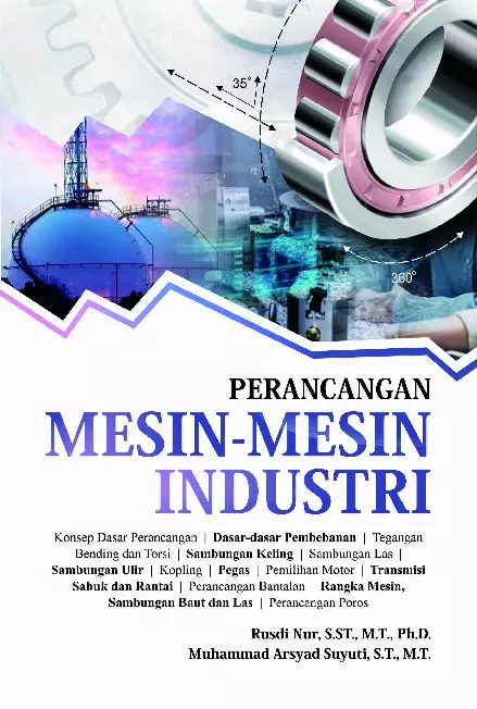 Sinopsis Buku: Buku ini merupakan referensi utama dalam mata kuliah *Perancangan Mesin-Mesin Industri* yang disusun oleh Rusdi Nur, S.ST., M.T., Ph.D. dan Muhammad Arsyad Suyuti, S.T., M.T. Buku ini bertujuan untuk memberikan pemahaman yang komprehensif tentang konsep dasar perancangan mesin, termasuk prinsip-prinsip dasar pembebanan, jenis-jenis sambungan, serta aplikasi dalam desain struktur industri. Buku ini terdiri dari beberapa bab utama, di antaranya: - BAB II: Konsep Dasar Perancangan yang menjelaskan definisi perancangan, dasar-dasar perancangan industri, proses perancangan, keterampilan yang dibutuhkan, fungsi, syarat, dan kriteria evaluasi perancangan. - BAB III: Dasar-Dasar Pembebanan yang membahas gaya aksial dan geser murni sebagai dasar analisis struktur. - BAB V: Sambungan Keling yang menjelaskan berbagai tipe sambungan keling, kegagalan, kekuatan, efisiensi, serta aplikasinya dalam struktur dan beban eksentris. - BAB VI: Sambungan Las yang memperkenalkan jenis-jenis sambungan las, seperti las fillet melintang dan sejajar, serta analisis kekuatannya. Selain itu, buku ini juga menyertakan soal-soal latihan di akhir setiap bab untuk memperkuat pemahaman pembaca. Buku ini sangat relevan untuk mahasiswa teknik mesin dan profesional yang memerlukan panduan praktis dalam perancangan mesin industri.
