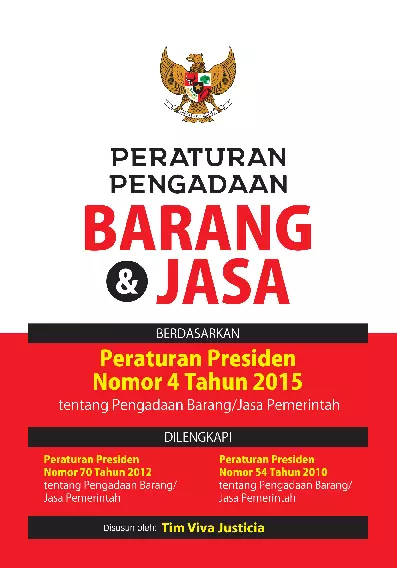 Sinopsis Buku: Buku ini merupakan panduan terstruktur dan komprehensif bagi semua pihak yang terlibat dalam proses pengadaan barang dan jasa di lingkungan pemerintah. Buku ini mengacu pada Peraturan Presiden Nomor 4 Tahun 2015 tentang perubahan keempat atas Peraturan Presiden Nomor 54 Tahun 2010, serta Peraturan Lembaga Kebijakan Pengadaan Barang dan Jasa Pemerintah (LKPP) Nomor 22 Tahun 2015. Buku ini bertujuan untuk memberikan pemahaman yang jelas dan terarah mengenai aturan, tata cara, serta mekanisme pengadaan barang dan jasa yang sah dan transparan. Isi buku ini mencakup berbagai bab yang membahas secara rinci proses pengadaan barang dan jasa mulai dari perencanaan, pemilihan penyedia, pelaksanaan, hingga pelaporan dan pertanggungjawaban. Bab-bab yang terdapat dalam buku ini antara lain: pelaksanaan swakelola, pengadaan barang/jasa melalui penyedia barang/jasa, etika pengadaan, pengadaan secara elektronik, pengadaan khusus dan pengecualian, pengendalian dan pengawasan, serta peran usaha kecil dan preferensi produksi dalam negeri. Selain itu, buku ini juga menjelaskan tentang konsep ramah lingkungan, penggunaan barang/jasa produksi dalam negeri, serta keikutsertaan perusahaan asing dalam pengadaan barang/jasa. Dengan adanya buku ini, diharapkan semua pihak dapat menjalankan tugas dan fungsi dalam pengadaan barang dan jasa secara profesional, akuntabel, dan berkelanjutan.