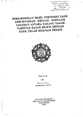 Perbandingan Hasil Tertinggi Yang Dihubungkan Dengan Populasi Tanaman Antara Kacang Tanah Varietas Gajah Murni Dengan Yang Telah Ditanam Petani Haryanto Fakultas Pertanian UGM Konten Lokal Konten Lokal 31378