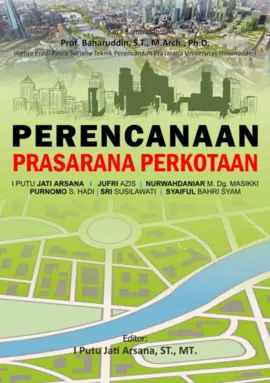 Saat ini ketersediaan prasarana perkotaan belum memenuhi kebutuhan masyarakat sesuai dengan skala pelayanan minimal karena tidak mempertimbangkan kondisi daerah setempat terutama terhadap jumlah penduduk lokal pendekatan desain keruangan unit unit atau kelompok lingkungan yang ada Sedangkan penempatan prasarana yang sudah ada belum mempertimbangkan jangkauan radius area layanan terkait dengan kebutuhan dasar prasarana yang harus dipenuhi untuk melayani pada area tertentu Selain itu juga perkembangan kelompok permukiman terpisah dengan fasilitas publik sehingga penghuni harus memenuhi kebutuhan dengan kendaraan bermotor dengan jarak tempuh lebih dari 3 km Hal ini sangat memprihatinkan untuk itu diperlukan upaya yang sistematis dalam penyediaan prasarana melalui optimalisasi layanan Untuk memenuhi tujuan inilah maka buku ini disusun ke dalam dua bagian Pada bagian pertama buku ini menguraikan tentang teori teori dasar perencanaan prasarana terkait dengan prasarana pendidikan prasarana perdagangan prasarana persampahan prasarana pembangkit listrik tenaga surya ruang terbuka hijau dan prasarana penanggulangan kebakaran Sedangkan pada bagian kedua merupakan arahan pengembangan prasarana perkotaan Pada bagian ini dengan berlatar belakang ilmu teknik perencanaan prasarana keenam penulis mengemukakan konsep arahan bagi pengembangan prasarana perkotaan dengan mengambil studi kasus di Kota Luwuk dan Kecamatan Balantak Kabupaten Banggai Provinsi Sulawesi Tengah