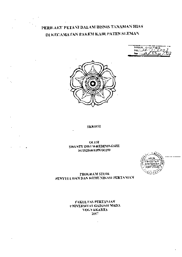 Perilaku Petani Dalam Bisnis Tanaman Hias Di Kecamatan Pakem Kabupaten Sleman Shanty Dwi Wrediningsih Fakultas Pertanian UGM Konten Lokal Konten Lokal 48952