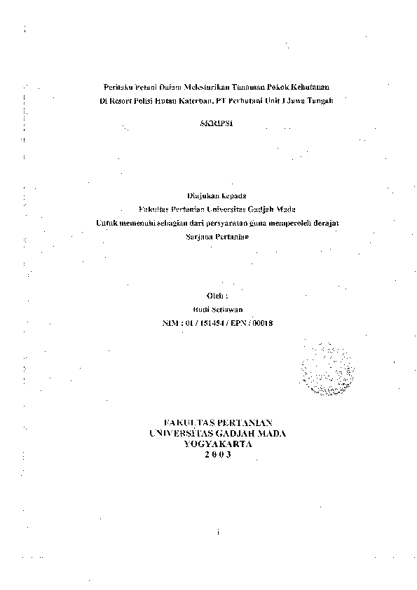 Perilaku Petani Dalam Melestarikan Tanaman Pokok Kehutanan Di Resort Polisi Hutan Katerban, PT Perhutani Unit 1 Jawa Tengah Budi Setiawan Fakultas Pertanian UGM Konten Lokal Konten Lokal 48323