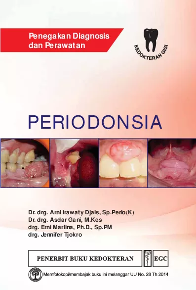 Periodonsia Penegakan Diagnosis dan Perawatan diterbitkan untuk memenuhi kebutuhan praktik kedokteran gigi dengan informasi terkini Keterampilan dalam menetapkan diagnosis menjadi dasar dan penting bagi dokter gigi sebelum menentukan jenis perawatan yang akan diberikan kepada pasien Kecermatan dan ketepatan dalam menetapkan diagnosis perlu dilatih dan dikembangkan dengan mendapatkan informasi baik dari bimbingan praktik di lapangan maupun referensi