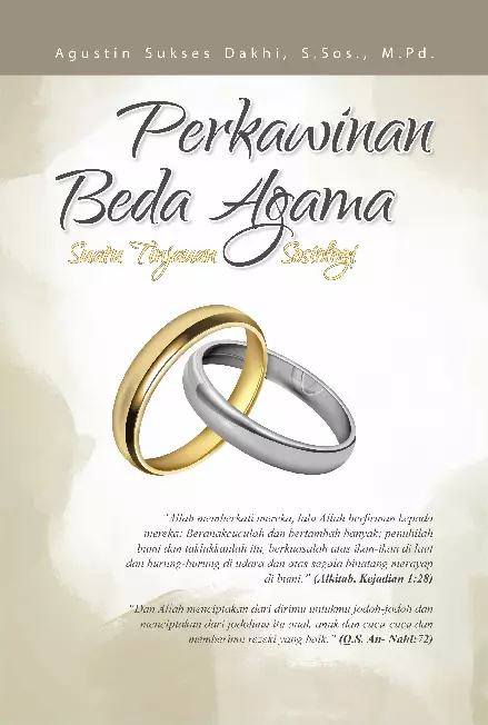 Sinopsis Buku: Buku ini membahas secara mendalam topik *Perkawinan Beda Agama* dari perspektif sosiologi. Penulis menjelaskan bahwa perkawinan merupakan institusi sosial yang penting dalam kehidupan masyarakat, baik bagi individu maupun bagi keluarga dan keturunan. Dalam konteks perkawinan beda agama, buku ini menggambarkan peran dan fungsi perkawinan dalam membangun solidaritas sosial dari tingkat mekanik ke tingkat organik, serta bagaimana keberagaman agama dapat menjadi alat untuk memperkuat hubungan antar manusia. Buku ini juga mengupas peran keluarga dalam proses perkawinan, serta tantangan dan dinamika sosial yang muncul ketika dua individu dari agama yang berbeda memutuskan untuk hidup bersama. Penulis menggunakan pendekatan sosiologis untuk menganalisis berbagai aspek perkawinan beda agama, termasuk hubungan antara individu, masyarakat, dan kelembagaan. Selain itu, buku ini mencakup referensi dari berbagai sumber, termasuk ayat-ayat Alkitab dan Al-Qur’an, yang menggambarkan pentingnya perkawinan dalam penciptaan jodoh dan keturunan. Penulis juga menjelaskan bahwa perkawinan bukan hanya sekadar hubungan antara dua individu, tetapi juga merupakan institusi yang memiliki fungsi sosial yang luas dan kompleks. Dengan pendekatan yang kritis dan analitis, buku ini memberikan wawasan yang mendalam tentang perkawinan beda agama, baik dalam konteks budaya, sosial, maupun agama. Buku ini ditujukan bagi mahasiswa, akademisi, dan pembaca yang tertarik memahami peran dan makna perkawinan dalam masyarakat modern.