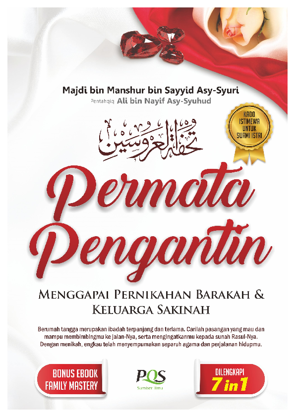 Pengantar Penerbit Alhamdulillahi Rabbil Alamin Segala puja dan puji hanya milik Allah Rabb semesta Allam Shalawat dan salam semoga senantiasa tercurahkan untuk Rasulullah keluarga dan para sahabat serta pengikutnya hingga hari kiamat Salah satu amalan yang paling dicintai Allah dan dianjurkan untuk disegerakan adalah menikah Pernikahan adalah salah satu syariat Allah yang paling mulia dan salah satu benteng diri yang menjaga dari perbuatan zina Rasulullah bersabda Wahai para pemuda siapa di antara kalian yang mampu menanggung beban pernikahan hendaklah ia menikah karena sesungguhnya nikah itu lebih menundukkan pandangan dan lebih menjaga kemaluan HR Al Bukhari dan Muslim Pernikahan yang barakah dalam rangka membangun rumah tangga bahagia dunia akhirat adalah idaman setiap manusia Terlebih lagi memiliki pendamping hidup yang saleh dan salehah Bahkan tidak heran jika banyak cara dilakukan manusia untuk mencapai kebahagiaan dalam pernikahannya Namun tidak sedikit pula yang salah jalan dan cara justru mendatangkan kesengsaraan dalam pernikahannya Ada pula yang menyesali pernikahan atau pasangannya serta membuat rumah tangga mereka jauh dari kebahagiaan Buku yang ada di tangan Anda ini merupakan edisi terbaru dan terlengkap dari buku karya Majdi bin Manshur bin Sayyid Asy Syuri yang berjudul Tuhfatul Arusain yang telah ditahqiq oleh Ali bin Nayif Asy Syuhud Buku ini membahas tentang proses membangun rumah tangga yang bahagia sakinah mawadah wa rahmah dimulai dari motivasi menikah kriteria memilih pasangan hingga permasalahan dalam urusan ranjang suami istri dibahas tuntas ringkas dan jelas 3