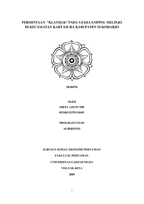 Permintaan ”Klathak” Pada Usaha Emping Melinjo Di Kecamatan Kartasura Kabupaten Sukoharjo Shita Adi Putri Fakultas Pertanian UGM Konten Lokal Konten Lokal 31305