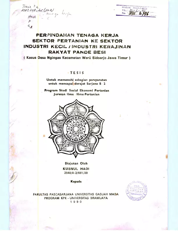Perpindahan Tenaga Kerja Sektor Pertanian Ke Sektor Industri Kecil / Industri Kerajianan Rakyat Pande Besi Kusnul Hadi Fakultas Pertanian UGM Konten Lokal Konten Lokal 31094
