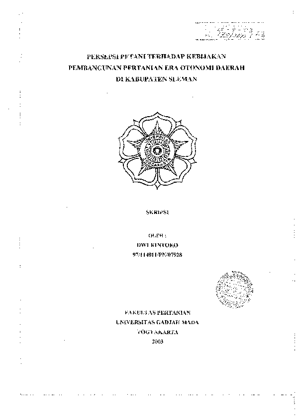 Persepsi Petani Terhadap Kebijakan Pembangunan Pertanian Era Otonomi Daerah Di Kabupaten Sleman Dwi Kintoko Fakultas Pertanian UGM Konten Lokal Konten Lokal 48237