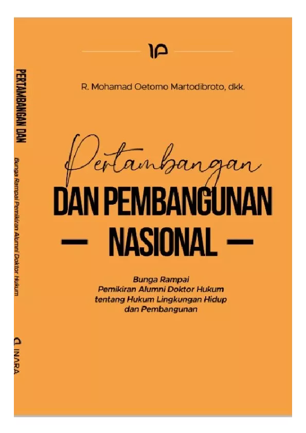 PERTAMBANGAN DAN PEMBANGUNAN NASIONAL Bunga Rampai Pemikiran Alumni Doktor Hukum tentang Hukum Lingkungan Hidup dan Pembangunan R Mohamad Oetomo Martodibroto Daruma Daishi Ida Sumarsih Noviana Tansari Henry Soelistyo Budi Reynold Rudyismanto Boy Jeckson Situmorang Rudy Harjanto Desnadya Anjani Putri Meggy Tri Buana Tunggal Sari Rizky Junianto Febriyanti Prisca Sutikno Maria Pranatia Jovita Irawati Jenny Jatemin Michael Sofian Tanuhendrata