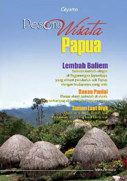 Ternyata belum semua potensi wisata Provinsi Papua mampu menarik wisatawan untuk datang berkunjung Tingkat kunjungan wisatawan ke Papua masih jauh dari yang diharapkan Beberapa objek wisata unggulan masih sepi pengunjung terutama wisatawan luar daerah Efeknya tentu saja sektor pariwisata Provinsi Papua belum bisa berbuat banyak untuk meningkatkan kesejahteraan masyarakatnya Beranjak dari permasalahan tersebut lahirlah buku Pesona Wisata Papua ini Buku ini menguraikan potensi pariwisata Provinsi Papua secara sederhana dan ringkas Keberagaman objek wisata Provinsi Papua dikelompokkan dalam wisata alam bahari ekowisata sejarah budaya religi dan kuliner Dengan membaca buku ini wisatawan memperoleh informasi dunia pariwisata Provinsi Papua secara menyeluruh