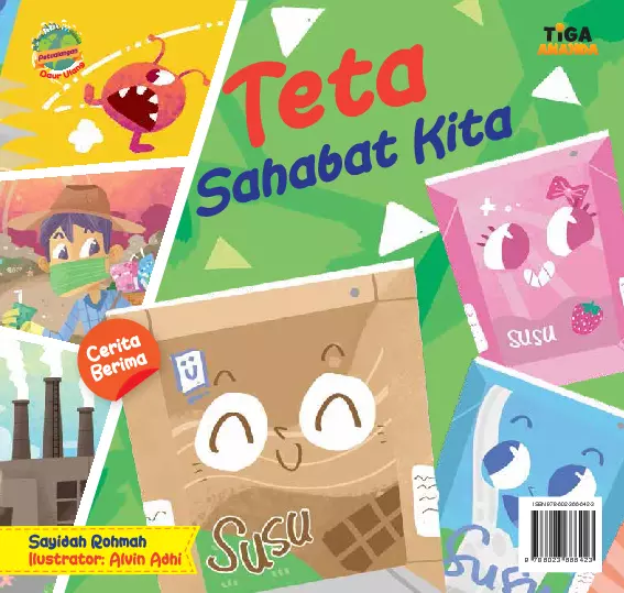 Sinopsis: Buku ini menceritakan kisah tentang Teta, sebuah kemasan minuman yang memiliki peran penting dalam kehidupan sehari-hari. Dalam cerita ini, Teta menjadi sahabat anak-anak yang menyenangkan dan memberikan kebahagiaan selama ia digunakan. Namun, setelah penggunaan, Teta harus menghadapi nasib yang berbeda. Dari tempat sampah, Teta akhirnya dikirim ke tempat pembuangan akhir, di mana ia merasa tertekan dan berharap bisa kembali berguna. Melalui cerita ini, buku ini mengajarkan pentingnya sikap peduli terhadap lingkungan, khususnya dalam hal daur ulang dan pengelolaan sampah. Teta menjadi simbol dari kemasan yang bisa didaur ulang, dan cerita ini juga menekankan pentingnya membuang sampah ke tempat yang tepat, seperti tempat sampah khusus kemasan karton atau sampah anorganik. Cerita ini disajikan dengan bahasa yang menarik, visual yang menarik, serta pesan yang kuat tentang lingkungan. Buku ini sangat cocok untuk anak-anak Indonesia sebagai bacaan yang edukatif dan menyenangkan, sekaligus mengajarkan nilai-nilai kepedulian terhadap lingkungan sejak dini.