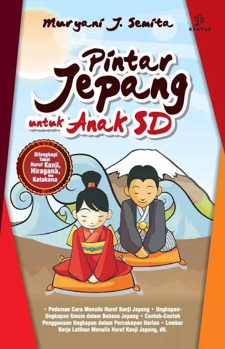 Belajar bahasa Jepang itu sulit Tidak lagi jika dengan buku ini Lewat buku ini Adik Adik akan dibimbing langkah demi langkah belajar bahasa Jepang mulai dari mengenal macam macam huruf Kanji Hiragana dan Katakana hingga belajar kosakata bahasa Jepang serta peng gunaannya dalam percakapan Adik Adik juga bisa ber latih menulis kata kata dengan huruf Kanji dalam lembar latihan unik di dalam buku ini Menariknya lagi buku ini juga melampirkan tabel lengkap huruf Hiragana dan Katakana sehingga Adik Adik bisa belajar sekaligus menghafalkan huruf huruf Jepang secara mengasyikkan Jadi tunggu apa lagi Segera ambil buku ini dan rasakan serunya belajar bahasa Jepang