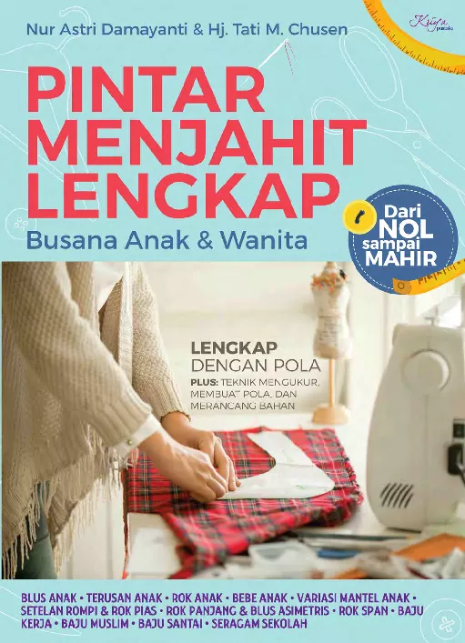 Salah satu kegiatan menjahit yang banyak dijalankan adalah menjahit baju Karena dengan menjahit baju sendiri Anda bisa memperbaiki bahkan membuat baju sendiri Namun tidak banyak orang yang berpikir bahwa menjahit baju itu merupakan hal yang sulit dilakukan Padahal jika mengetahui dasar dasar cara menjahit baju Anda dapat dengan mudah mempraktikkannya br nbsp br nbsp Sebagai langkah awal untuk cara menjahit baju adalah membeli atau menyiapkan perlengkapan dan bahan yang digunakan untuk menjahit Ada beberapa perlengkapan dan bahan yang perlu disiapkan seperti pita ukur atau biasa disebut dengan meteran jahit kain gunting penggaris pendedel benang jarum tangan benang karbon kain dan rader pensil kain atau kapur kain jarum pentul dan mesin jahit br nbsp Buku ini akan membuat pengalaman Anda menjahit semakin bertambah Disajikan lengkap beragam pilihan model baju anak dan wanita yang dengan mudah dibuat Dijelaskan dengan lengkap step by step mulai dari teknik dasar pembuatan pola mengukur hingga merancang bahan