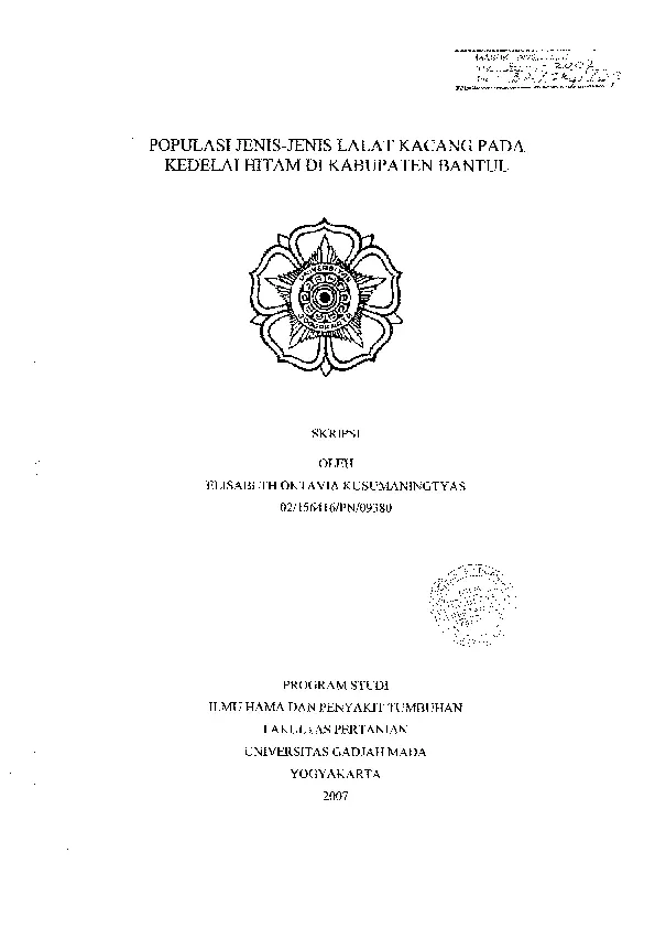 IV HASIL DAN PEMBAHASAN Hasil penelitian pada periode April Mei Juli Agustus dan Agustus September ditemukan dua jenis lalat kacang di lahan pertanaman kedelai hitam di Kabupaten Bantul Kedua jenis itu yaitu Agromyza phaseoli Tryon dan Melanagromyza dolichostigma de Meijere Hal ini diketahui berdasarkan gejala serangan yang tampak pada tanaman Imago lalat kacang di lahan pertanaman kedelai hitam di Kabupaten Bantul ditunjukkan pada Gambar 1 Gambar 1 Lalat kacang di pertanaman kedelai hitam Foto Okta 2006 Gejala serangan lalat kacang pada kedelai hitam ditunjukkan dalam Gambar 2 Gambar 2 Gejala tanaman terserang lalat kacang Foto Okta 2006 10