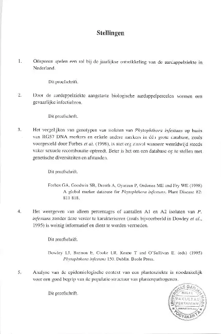 Potato Late Blight Epidemics And Population Structure Of Phytophthora Infestans M.J. Zwankhuizen Fakultas Pertanian UGM Konten Lokal Konten Lokal 48494