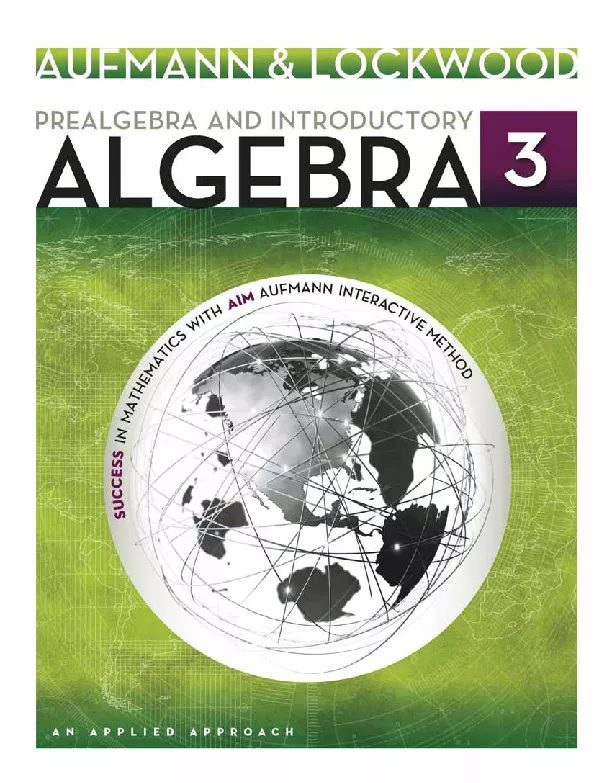 The focus in PREALGEBRA INTRODUCTORY ALGEBRA is on you the student You are encouraged to be an active participant both in the classroom and in your own studies as you work through the How To examples and the paired Examples and You Try It problems Active engagement is crucial to your success PREALGEBRA INTRODUCTORY ALGEBRA presents worked examples and then provides you with the opportunity to immediately solve similar problems helping you build confidence as you learn to master the concepts This simple framework known as the Aufmann Interactive Method AIM is the foundation for your success All lessons exercise sets tests and supplements are organized around a carefully constructed hierarchy of objectives Each exercise mirrors a preceding objective enabling you to better understand key concepts and practice skills you have just learned This clear objective based approach helps you organize your thoughts around the content making the pages easier for you to follow Available with InfoTrac Student Collections http gocengage com infotrac